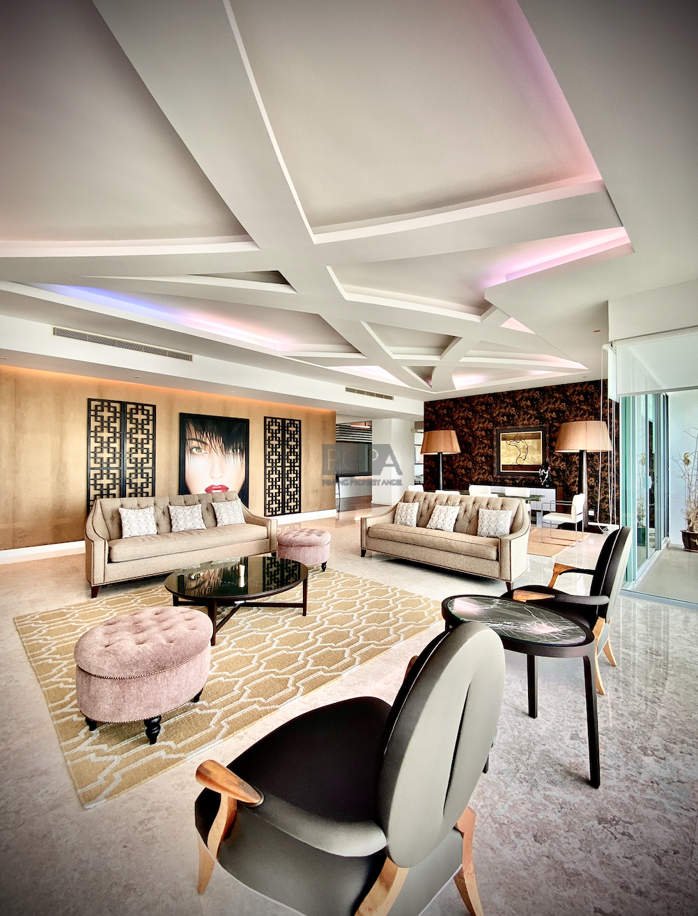 This (mid-floor) West Wing unit has 4+1 bedrooms (including a maids room), all with attached bathrooms.  Designer finishes, clean lines, and stylish accents at every turn — this stunning and sophisticated home is in renovated and furnished, ready-to-move-in condition.  The 5221 sqft condo comes with 3 car parks. Unobstructed seaviews from almost every room.