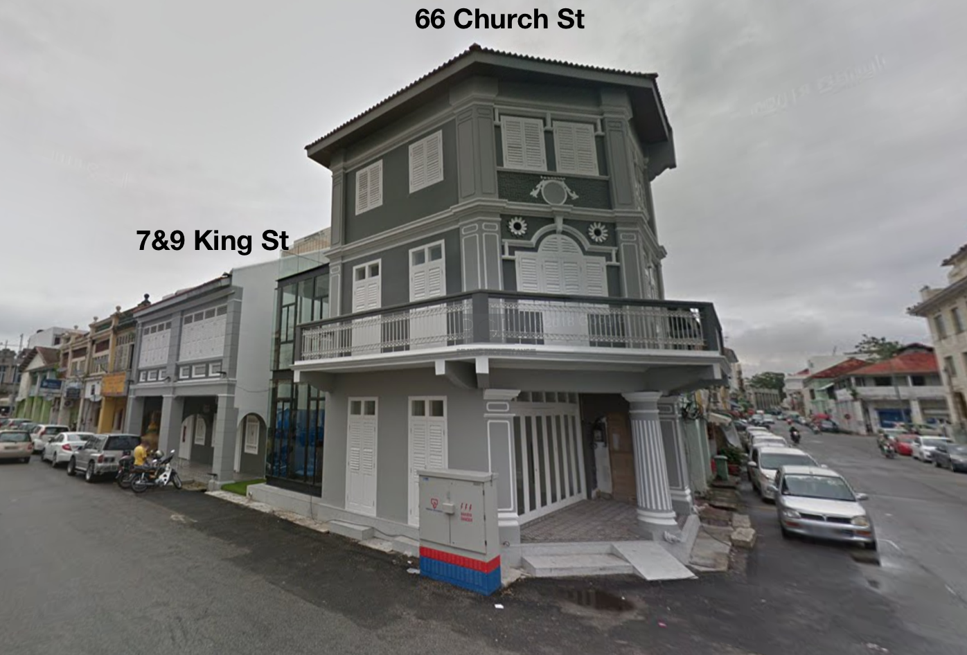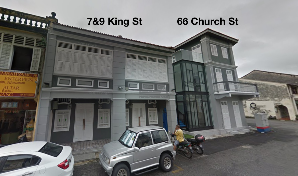 These three pre-war heritage shophouses sit prominently at the intersection of 66 Church Street and 7 & 9 King Street, within the vibrant core of George Town’s UNESCO World Heritage City. Enjoying a prime location with consistently high foot traffic, the properties present a rare opportunity in one of Penang’s most sought-after heritage precincts.